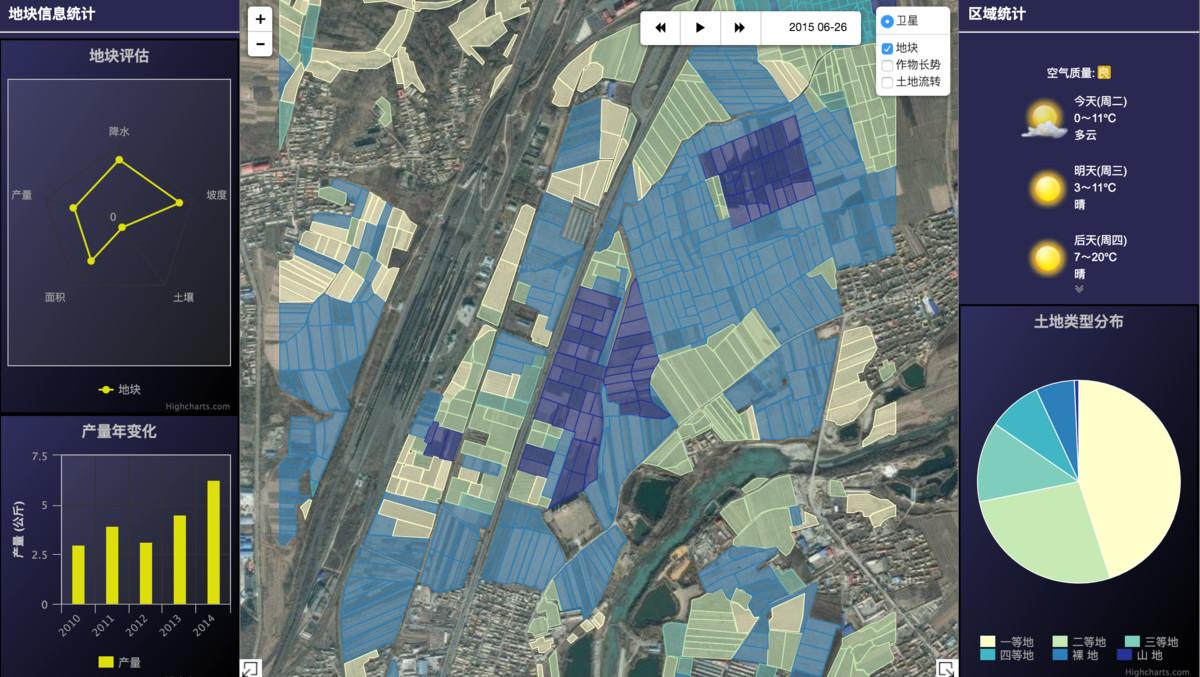 佳格大數(shù)據(jù)董事長(zhǎng)張弓告訴36氪,一些大農(nóng)場(chǎng)擁有幾百畝地,但很少是連成一片的,故而其客戶往往首先利用佳格軟件進(jìn)行資產(chǎn)管理,也就是遠(yuǎn)程可視化查看自家土地,進(jìn)而對(duì)土地分級(jí)。再舉幾個(gè)具體的應(yīng)用場(chǎng)景,佳格通過氣象信息預(yù)測(cè)天氣從而幫助農(nóng)民判斷是否要灌溉,避免水資源浪費(fèi);根據(jù)一塊地過去數(shù)十年的產(chǎn)量、災(zāi)害情況來判斷它適合種什么品類、土地資產(chǎn)價(jià)值(已經(jīng)有土流地磚服務(wù)商利用佳格做土地資產(chǎn)評(píng)估);監(jiān)測(cè)到蟲害后,通過軟件遠(yuǎn)程遙控植保無人機(jī)去撒藥……