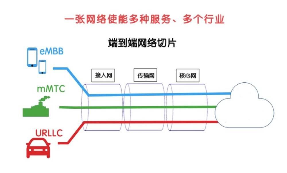 網(wǎng)絡(luò)切片將一張物理網(wǎng)絡(luò)切成多張相互獨立的虛擬子網(wǎng)絡(luò)。通過端到端的網(wǎng)絡(luò)切片技術(shù),5G使能一張網(wǎng)絡(luò)服務(wù)多場景、多業(yè)務(wù)和多行業(yè)。