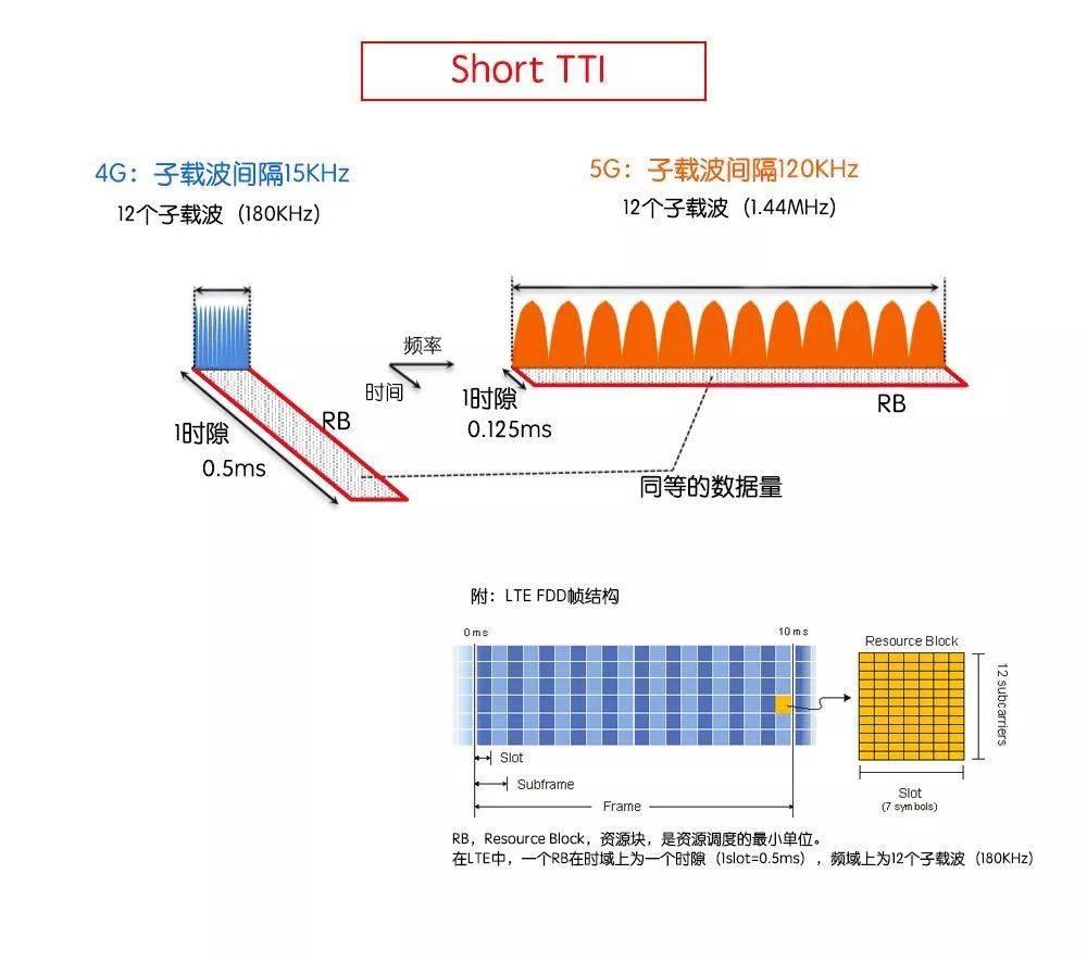 比如,Short TTI,即縮短每個傳輸時間間隔,通過增加子載波間隔,可以在更短的時間傳輸?shù)攘康臄?shù)據(jù)。